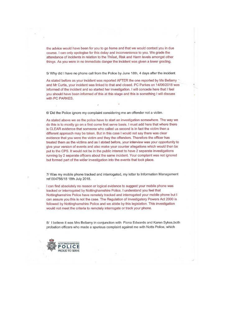 This was the start of my involvement with the corrupt PC Parkes, who had been tasked. to investigate their complaint; meanwhile, I went to Nottingham Central Police Station to lodge my complaint and was given an incident number. I did not realise at the time that this piece of corrupt scum would ignore my complaint. Parkes, who had obviously decided I was Guilty, fell into the prevailing scenario in Nottinghamshire Police that women must always be believed, plus the me to trend. Karina is a brilliant actress and liar and would have played on the empathy and corrupt stupidity of Parkes. This would explain the lack of communication and investigation by PC Parkes even though I offered to travel to Nottingham for an interview.