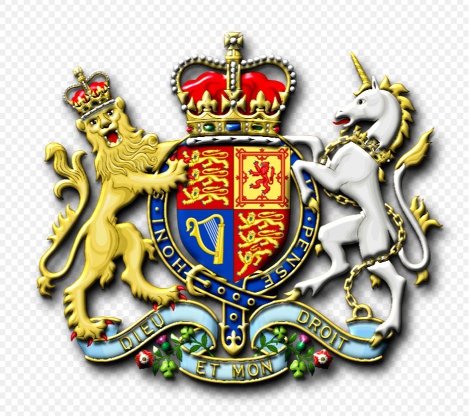 This is displayed in all courtrooms, with the motto.DIEU ET MON DROIT