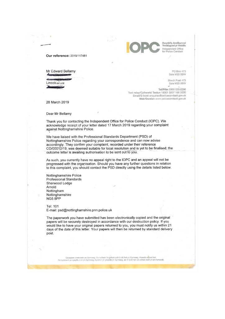 Nottinghamshire Police state they are proud to serve, but who are they proud to serve; it is certainly not the citizens; is it their political masters, their own political leanings, and their belief that they have a superior status? They do not seem to abide by the basic principles of policing but have their own agenda and believe in labelling people in line with their own bizarre beliefs in which they have been indoctrinated. I believe this indoctrination started back in the 1980s in the universities and the recruiting of indoctrinated graduates into the Police with fast-track promotion to senior positions; I believe this is the reason why the police are now inept and driven by the beliefs instilled in them by senior officers and in particularly by the College of Policing, which should register as a political party.