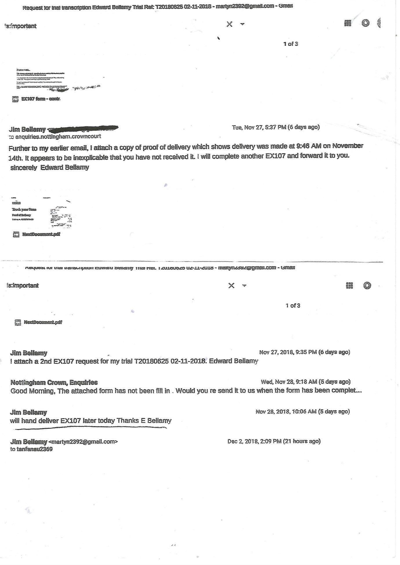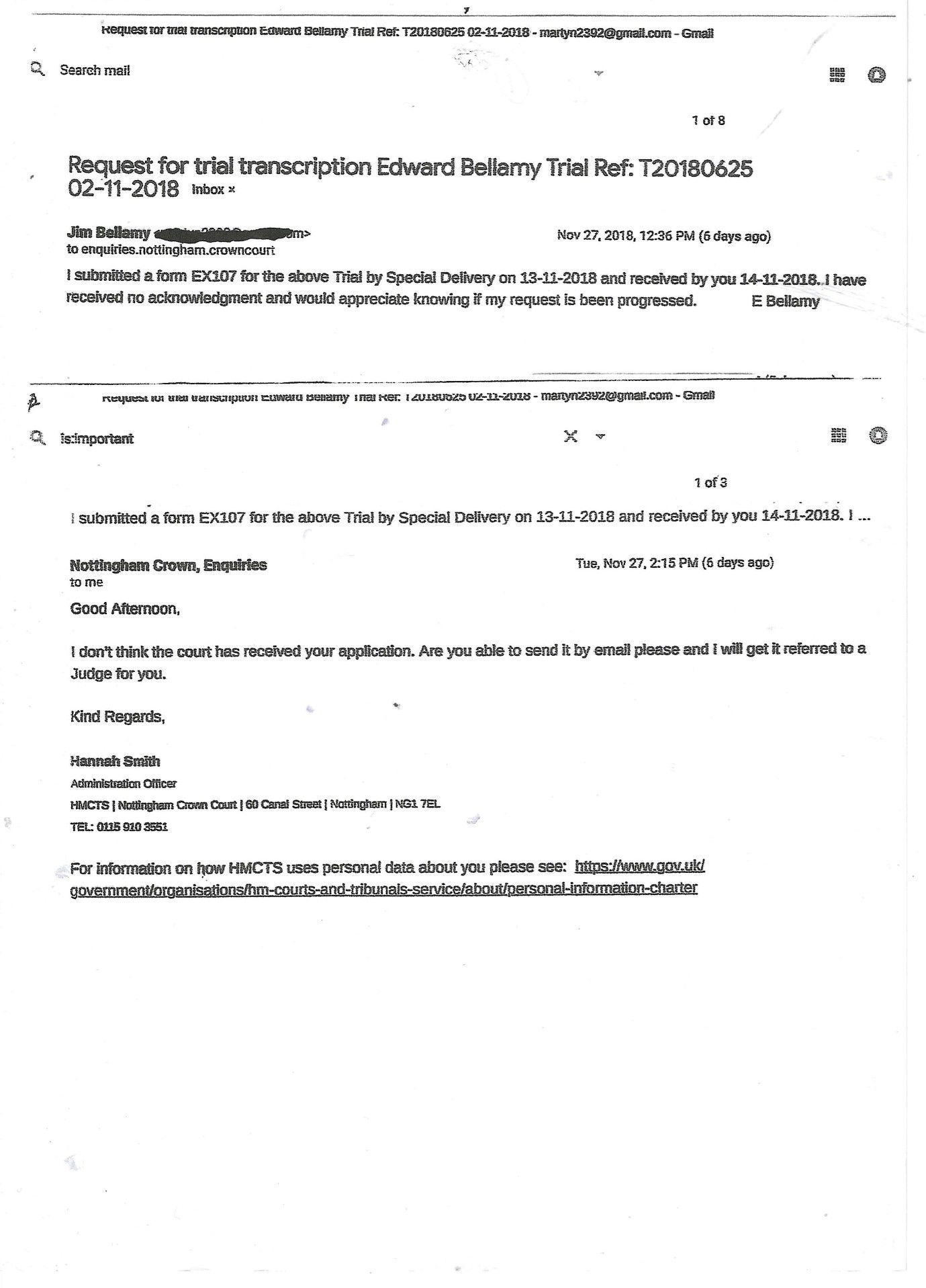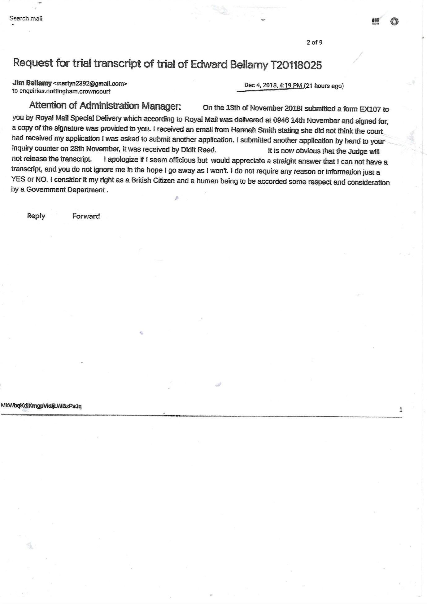 1 1 made two requests for transcription, denying that the first one was not received despite being sent and signed for by Special Delivery. Why was I lied to? I received only obstruction and obfuscation for four weeks before finally rejecting my request. This says a lot about our legal system regarding fairness and equality. If the recording and any Transcript were correctly analysed, it would vindicate that I made no rude or derogatory remarks. It begs the question of why I was denied the opportunity to receive a transcript: what was there to hide?