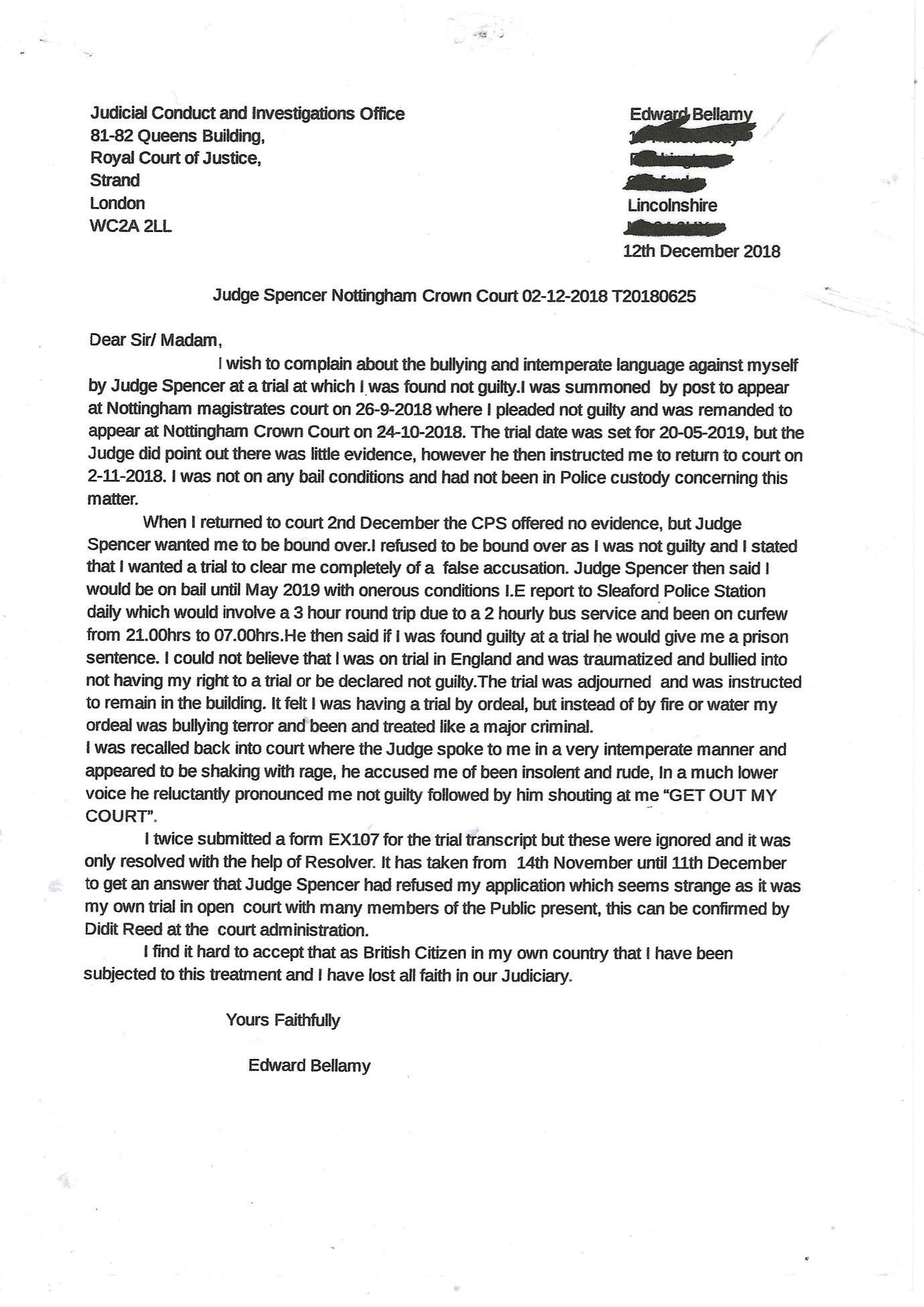 The real criminals in Nottingham Crown Court are not standing in the Dock; they are the judges, lawyers, court managers, and their staff. There is so much for British justice, more like North Korea or Iran. I next submitted a letter of complaint about the Judge to the Judicial Conduct and Investigation Office., which is based at the Royal Court Of Justice. I received a prompt acknowledgement, and more details were requested. After three months of back-and-forth correspondence, I pointed out that the trial should have been recorded on the new National court record system, DART. They said they would request a copy four months after the start of my complaint; surely this should have been done at the start of the investigation and not have to be prompted by me. They came back and stated that they had only recovered part of the. Part of the recording and nothing untoward was heard; this is supposed to be a state-the-art national computer justice record system that costs hundreds of millions of dollars. I do not believe them, it’s a cover-up and lies. They suggested that I engage a Solicitor and appeal. They also stated that Judges can say and do as they please. They know how to put down peasants like me without money to pursue the matter. I HAVE ONE THING FROM THIS SAGA: WE LIVE IN AN EXTREMELY CORRUPT COUNTRY WITH A DISGRACEFUL LEGAL SYSTEM CORRUPT FROM CLERKS TO THE HIGH COURT.